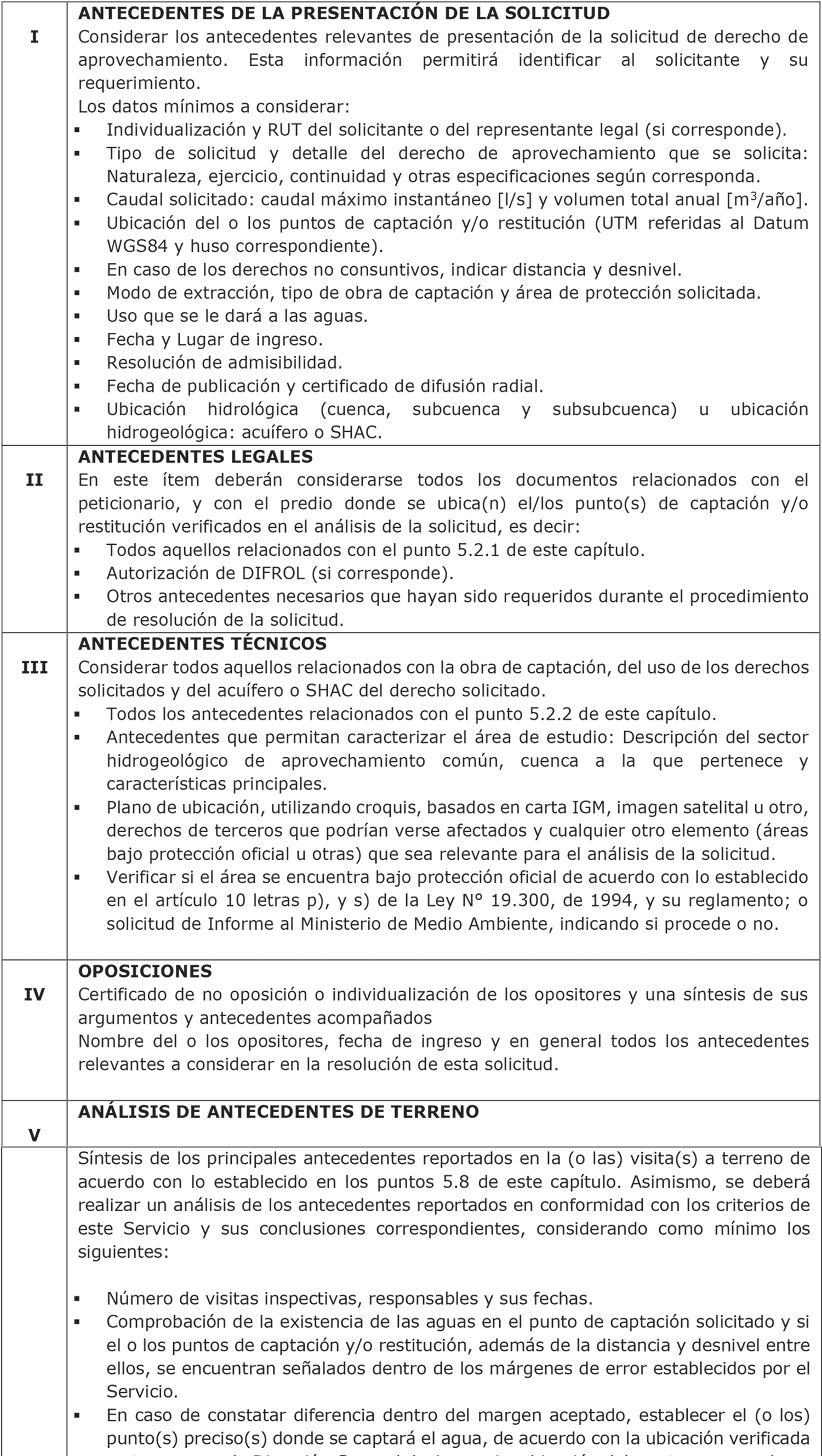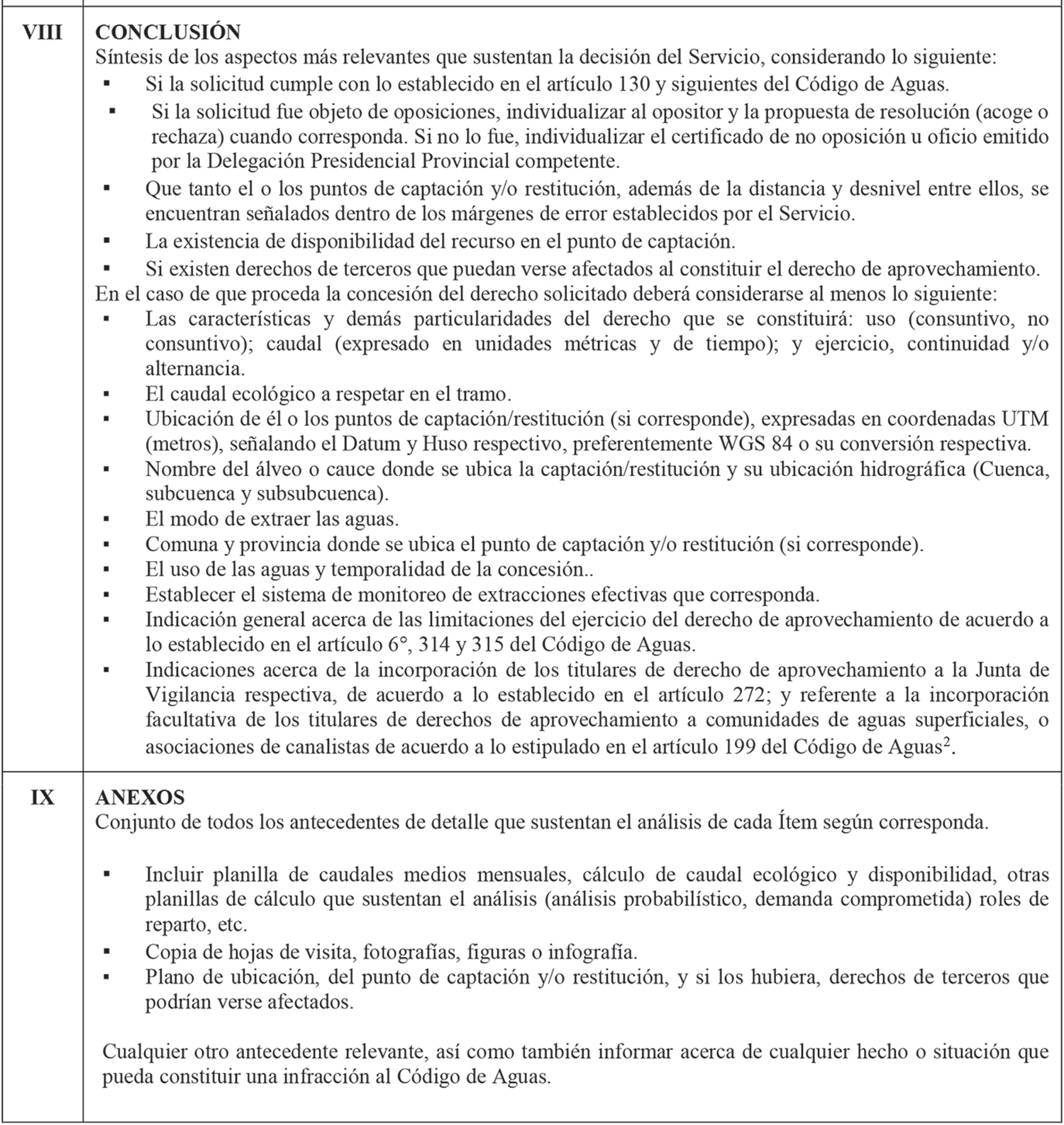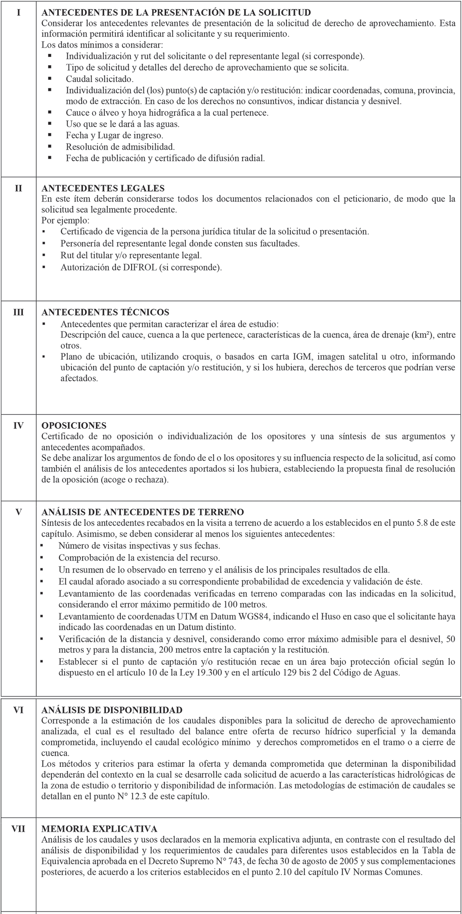 Estructura básica y requisitos mínimos informe técnico de solicitud de derecho aprovechamiento de aguas superficiales