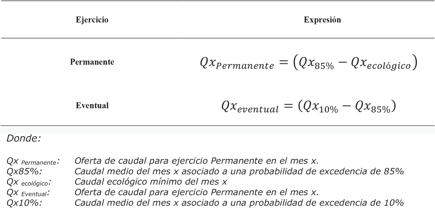 a) Determinación de la oferta de caudal de explotación a nivel de sectores de aprovechamiento común (metros cúbicos años) de acuerdo a la metodología e información disponible.