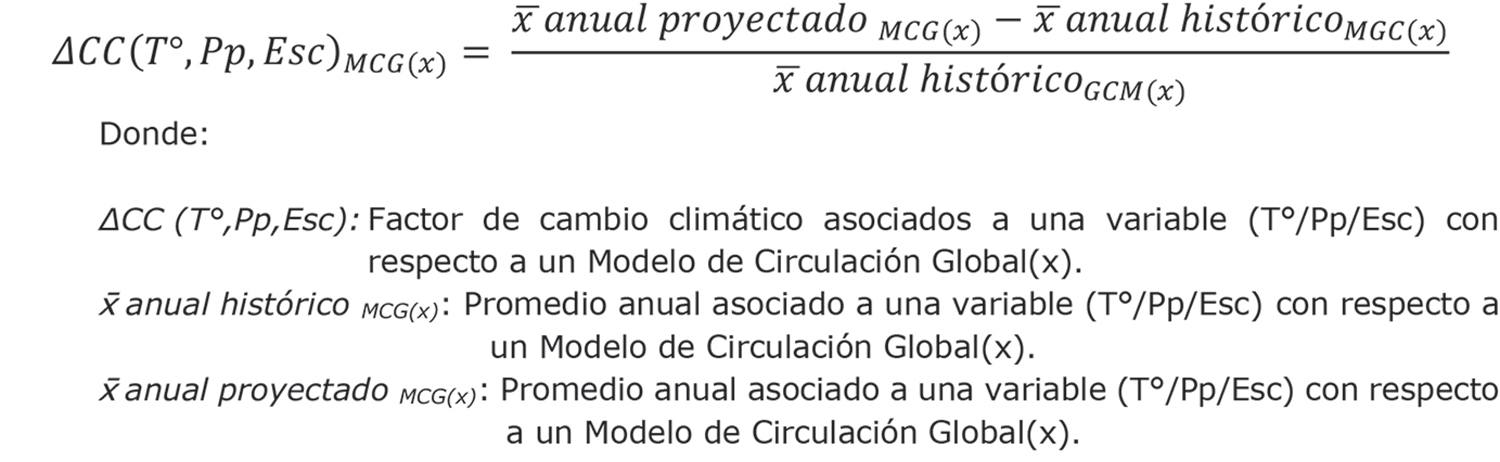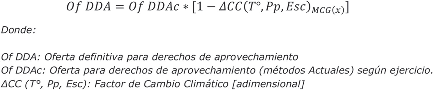El cambio climático adiciona una variable a considerar en la estimación de la oferta, la cual puede ser incorporada mediante proyecciones de las precipitaciones basadas en modelos de circulación global del clima (GMC) u otras.