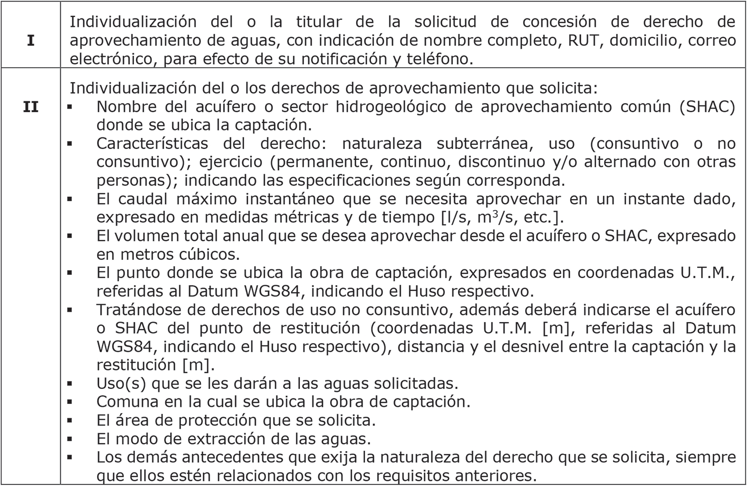 En aquellos casos donde el o la solicitante presente un estudio hidrogeológico con el objetivo de apoyar la petición de concesión de derechos de aprovechamiento de aguas subterráneas, este debe considerar como mínimo lo siguiente: