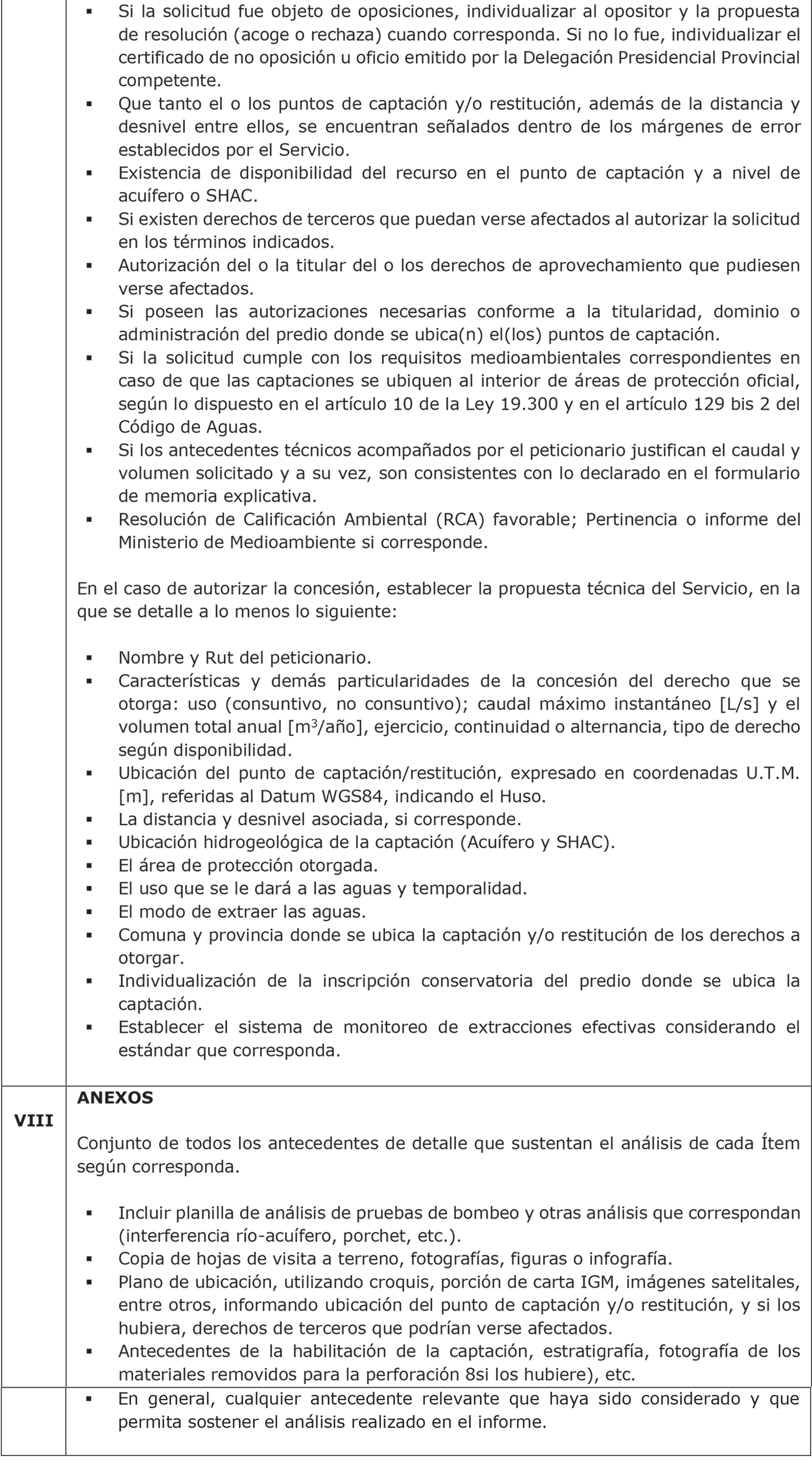 Con todo, tanto en el análisis y otorgamiento de este tipo de solicitudes, la Dirección General de Aguas deberá considerar: