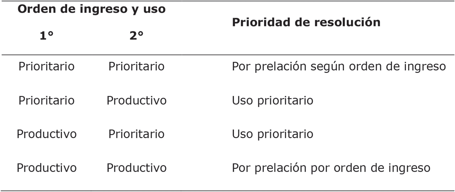 ii. Cuando la disponibilidad es suficiente para las solicitudes asociadas a usos prioritarios, se deberá asignar siguiendo el orden de prelación según la fecha de ingreso o cumpliendo los plazos legales respectivos, entendiendo que no existe restricción a la disponibilidad entre dichas solicitudes.