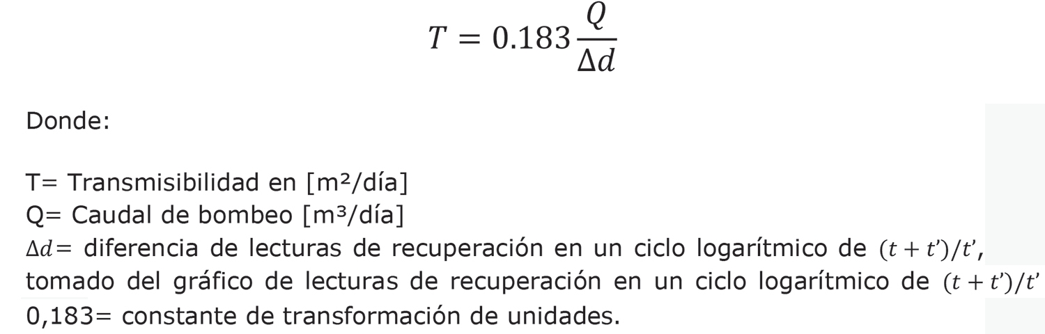 c) De acuerdo con la evaluación preliminar de los antecedentes anteriores, definir la realización de nuevas pruebas de bombeo con medición en pozos de observación para determinar los valores de los coeficientes característicos del acuífero.