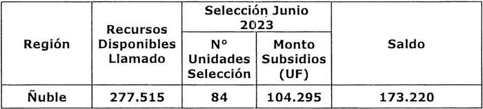 D.O. 20.10.2023 recursos comprometidos en el resuelvo 2 de la presente resolución, para el proyecto seleccionado en el llamado dispuesto por resolución exenta Nº 390 (V. y U.), de 2023, se resumen en el siguiente cuadro, incluyendo la suma total de familias beneficiadas, las Unidades de Fomento comprometidas y el saldo de recursos: