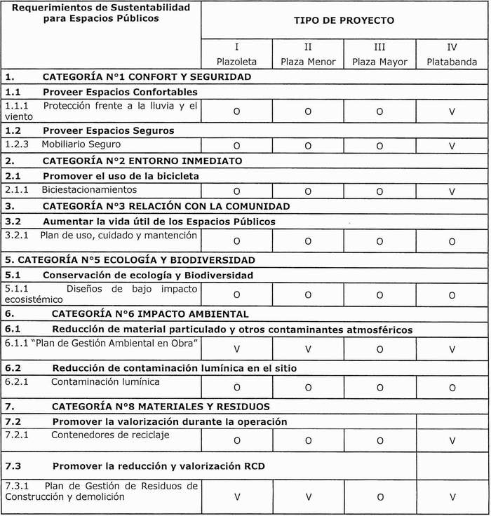 1.5 Reemplázase en el "ANEXO 2. Requerimientos mínimos para proyectos de Equipamiento Comunitarios Sustentables", el cuadro correspondiente a la letra "b) Requerimientos mínimos para Espacios Públicos y Áreas Verdes Sustentables" por el siguiente: