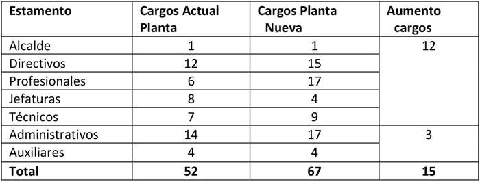 n) Que para cumplir todas las funciones que actualmente son asignadas a los municipios se hace necesario incrementar el número de cargos en los escalafones Técnicos, Administrativos y Auxiliares de manera de entregar una mejor cobertura de servicios municipales y cumplir con eficiencia y eficacia las necesidades de la comuna.