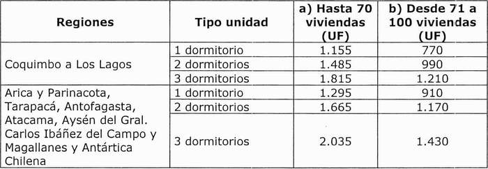 Según se establece en el cuadro precedente, los proyectos de hasta 70 viviendas podrán ser financiados en su totalidad con los montos de subsidio señalados en la columna a) y desde la vivienda 71 en adelante corresponde considerar el monto señalado en la columna b), las que además podrán complementarse con el préstamo al que se refiere el resuelvo 10, de corresponder.