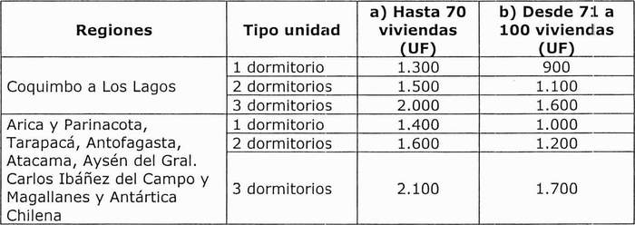 9.2. En el caso de proyectos de Construcción de Viviendas y Rehabilitación de Inmueble Existente, el subsidio se calculará por unidad de vivienda que incluya el proyecto hasta por el máximo que se indica en el siguiente cuadro, en Unidades de Fomento: