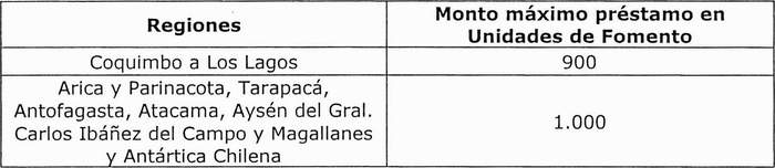 10.1. Para complementar el financiamiento para la adquisición del terreno o inmueble, la Construcción de Viviendas o Rehabilitación de Inmuebles Existentes o su adquisición, incluyendo adecuación, refacción y/o habilitación, el Serviu podrá otorgar uno o más préstamos, por el monto máximo por unidad de vivienda resultante que se indica en el cuadro siguiente:
