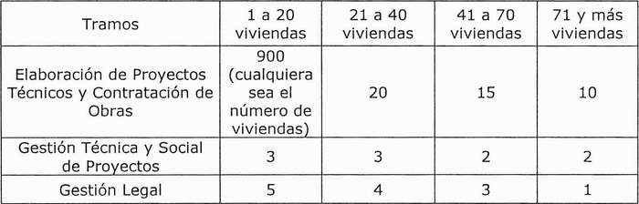 12.4. Las postulaciones de Construcción de Viviendas y Rehabilitación de Inmueble Existente que ingresen con comprobante de anteproyecto ingresado a la Dirección de Obras Municipales o Anteproyecto aprobado, podrán obtener un incremento en los honorarios correspondientes a la Elaboración de Proyectos Técnicos y Contratación de Obras que se indica a continuación: