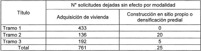 3º.- Exclúyanse del proceso de selección 761 postulaciones en la modalidad de adquisición de viviendas y 25 postulaciones en la modalidad de construcción en sitio propio o densificación predial para el Primer Llamado Nacional 2023, del Sistema Integrado de Subsidio Habitacional regulado por el DS Nº 1 (V. y U.), de 2011, efectuado por la resolución exenta Nº 634 (V. y U.), de 2023, presentadas por las personas individualizadas en las nóminas que se acompañan en soporte electrónico, en archivo pdf, por las causales que en cada caso se expresan; dichas nóminas forman parte integrante de la presente resolución: