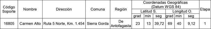 1. Autorízase a la concesionaria para rectificar las coordenadas, de una (1) torre de infraestructura física, autorizadas por decreto exento Nº 884, de 2017, quedando según se indica a continuación: