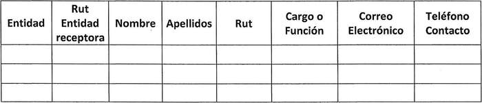 Para la habilitación de los usuarios de cada entidad otorgante obligada a rendir cuentas mediante el SISREC, aquellas deberán informar, en formato Excel, a la casilla de correo electrónico bc_rcuenta@contraloria.cl, de la Contraloría General, en el plazo de 10 días hábiles siguientes al inicio de cada etapa, los datos que se indican a continuación de los funcionarios(as) designados para la implementación del SISREC, para ser perfilados como administradores(as) de aquel, en calidad de titular y, al menos uno, en calidad de subrogante: