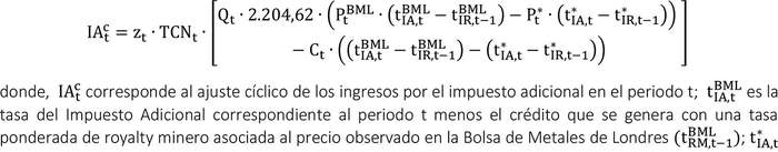 El ajuste cíclico de los Ingresos por el Impuesto Adicional (IAc) se determinará con datos trimestrales, según la diferencia entre el impuesto adicional de las GMP valorado al precio efectivo del cobre y el impuesto anual valorado al precio de referencia del cobre.