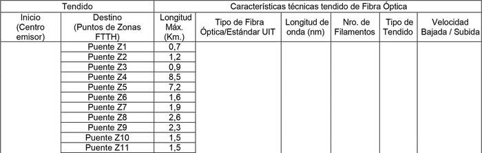 Los tendidos de fibra óptica serán con medios propios o de terceros debidamente autorizados.