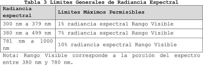 2.2. Radiancia espectral: Las luminarias utilizadas en avisos y letreros iluminados deberán ajustarse a lo señalado en los numerales 3.1 y 3.2, del artículo 5 de la presente norma.