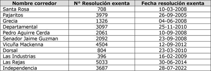 4.- Modifícanse las resoluciones exentas que se individualizan en el cuadro inserto al final del presente resuelvo, todas de la Secretaría Regional Ministerial de Transportes y Telecomunicaciones de la Región Metropolitana, que establecen corredores de transporte público, en el sentido de incorporar en el resuelvo N° 1.- de cada una de ellas, el siguiente párrafo final: