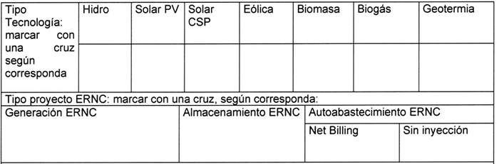 Formato de Antecedentes de operaciones y proyectos de generación y/o almacenamiento de energías, mediante ERNC