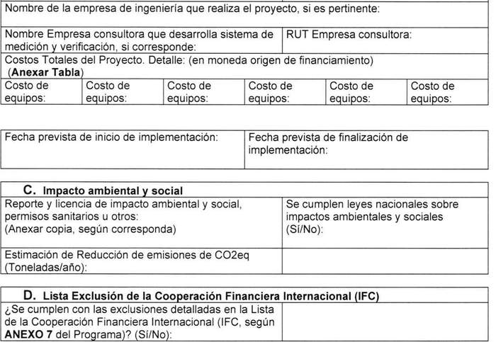 k) Reemplázase el Anexo Nº 2C, "Formato de Antecedentes de operaciones y proyectos para Proyectos de Mejora Medio Ambiental", por el que sigue: