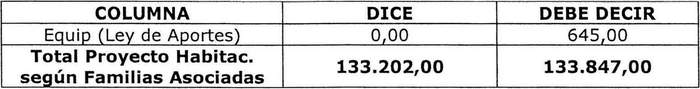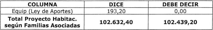 e) Reemplázase en la tabla inserta en su Anexo Único, en su fila Nº 25, correspondiente a la Región de Los Lagos, proyecto "84 Viviendas DS 49 Purranque" código 174629, los siguientes montos, según las columnas que se identifican a continuación: