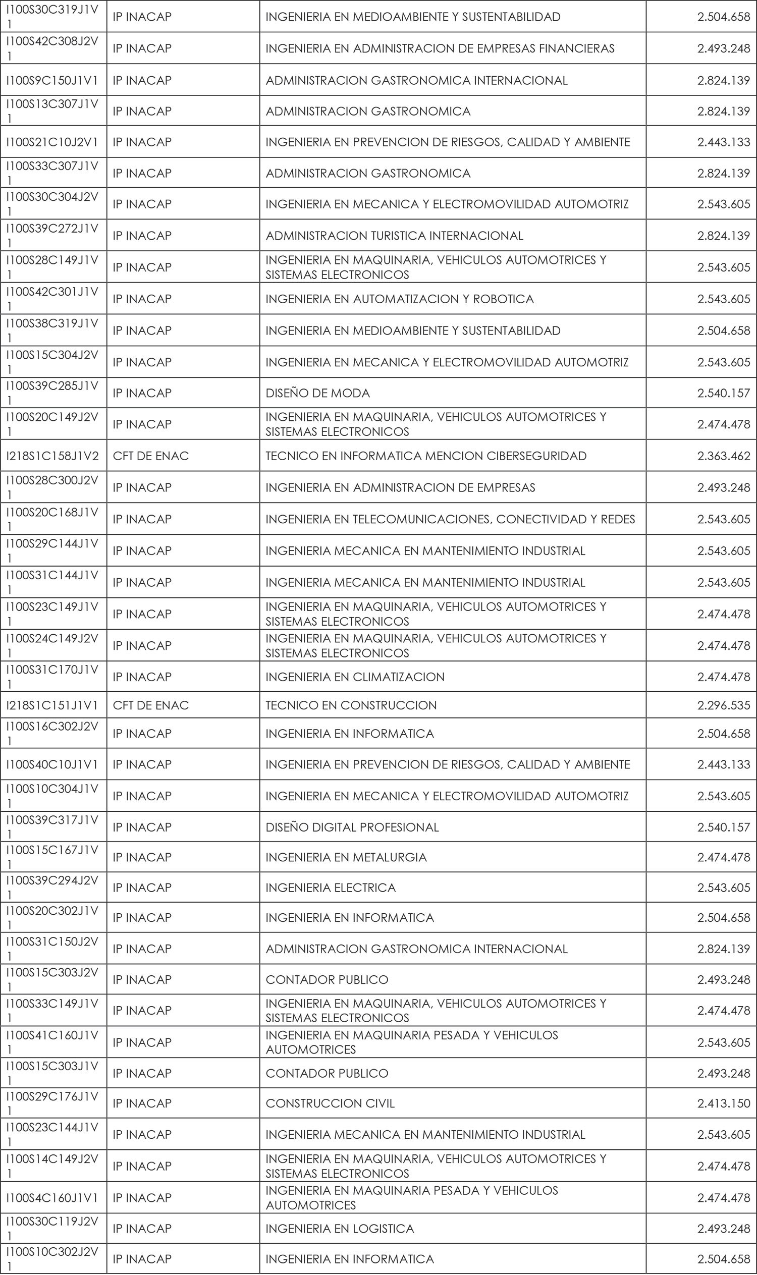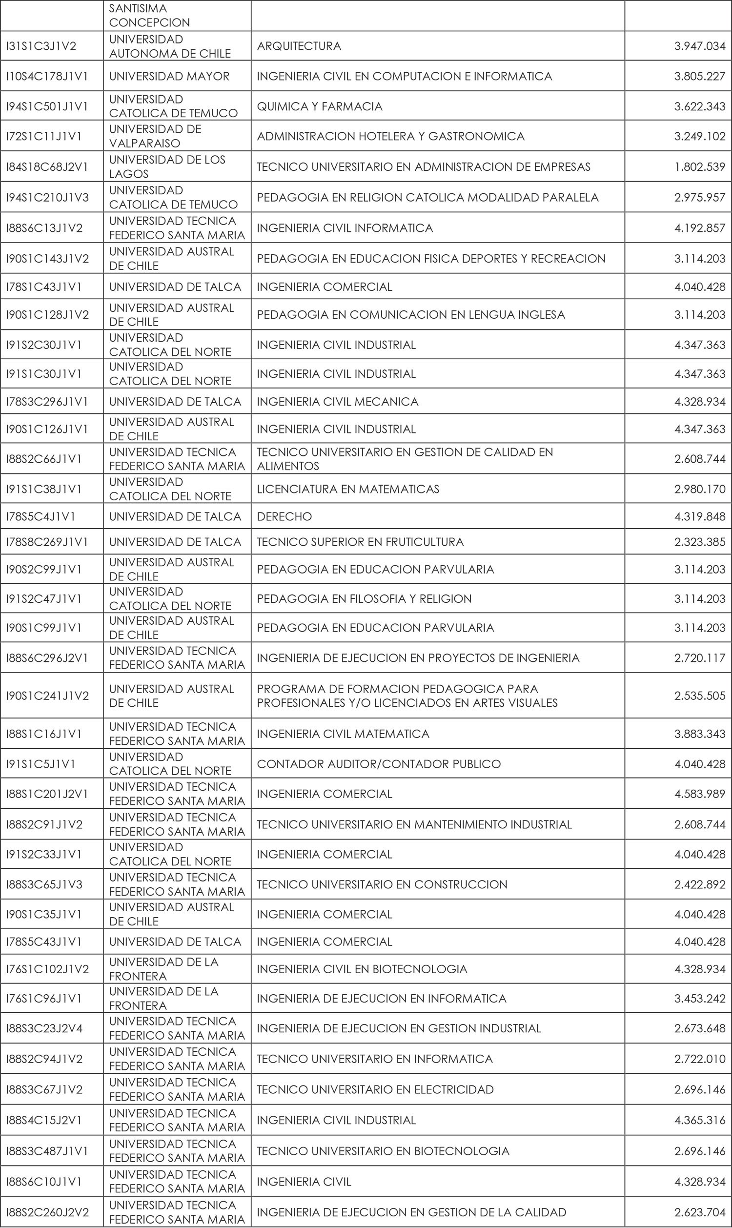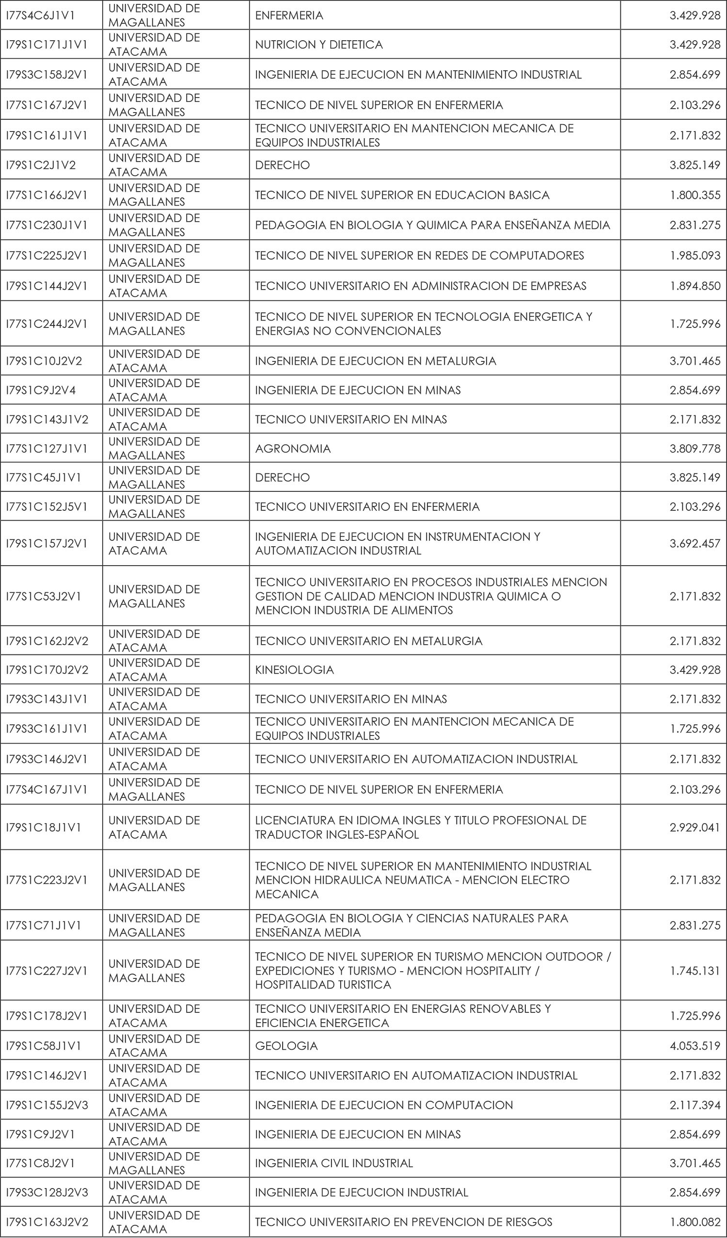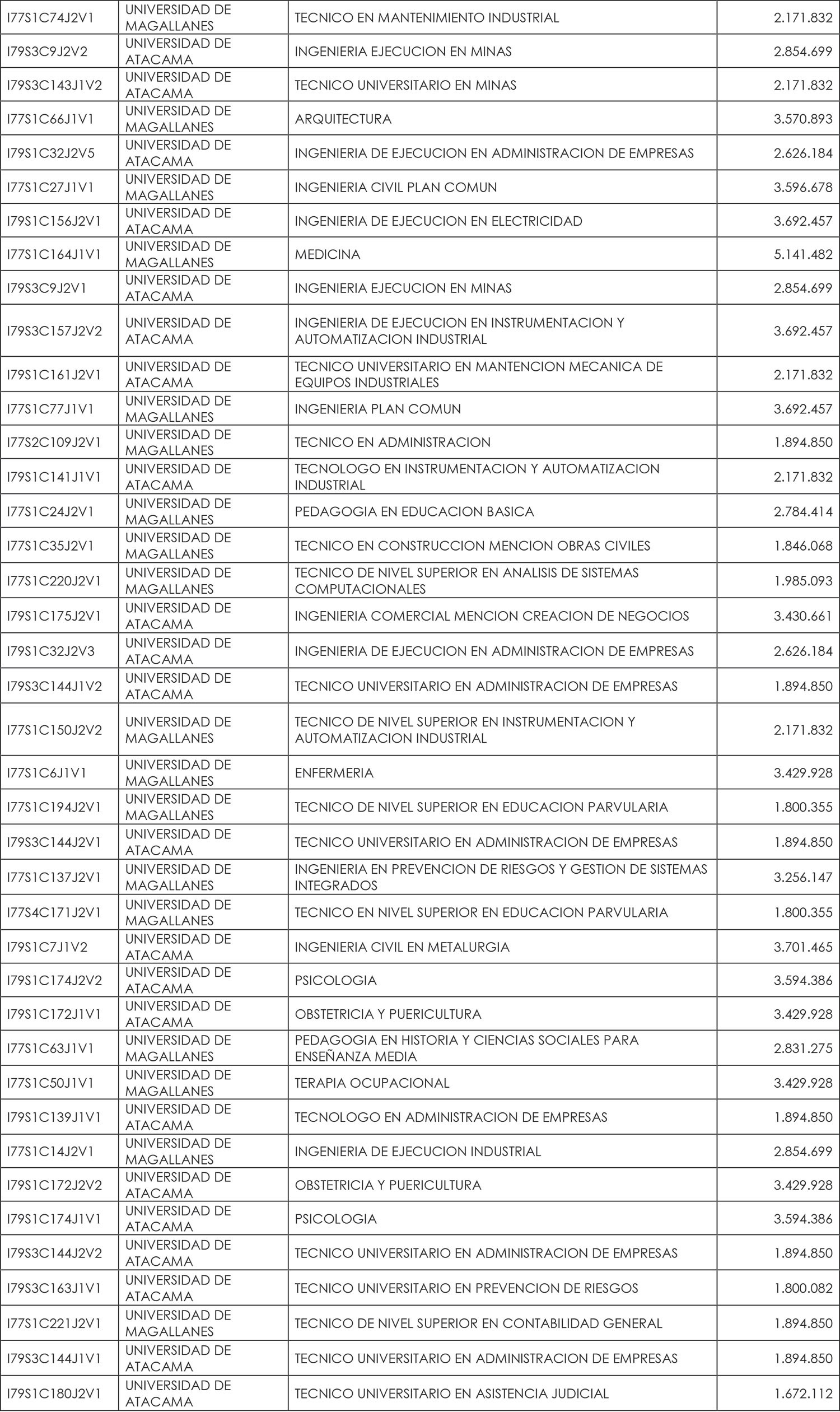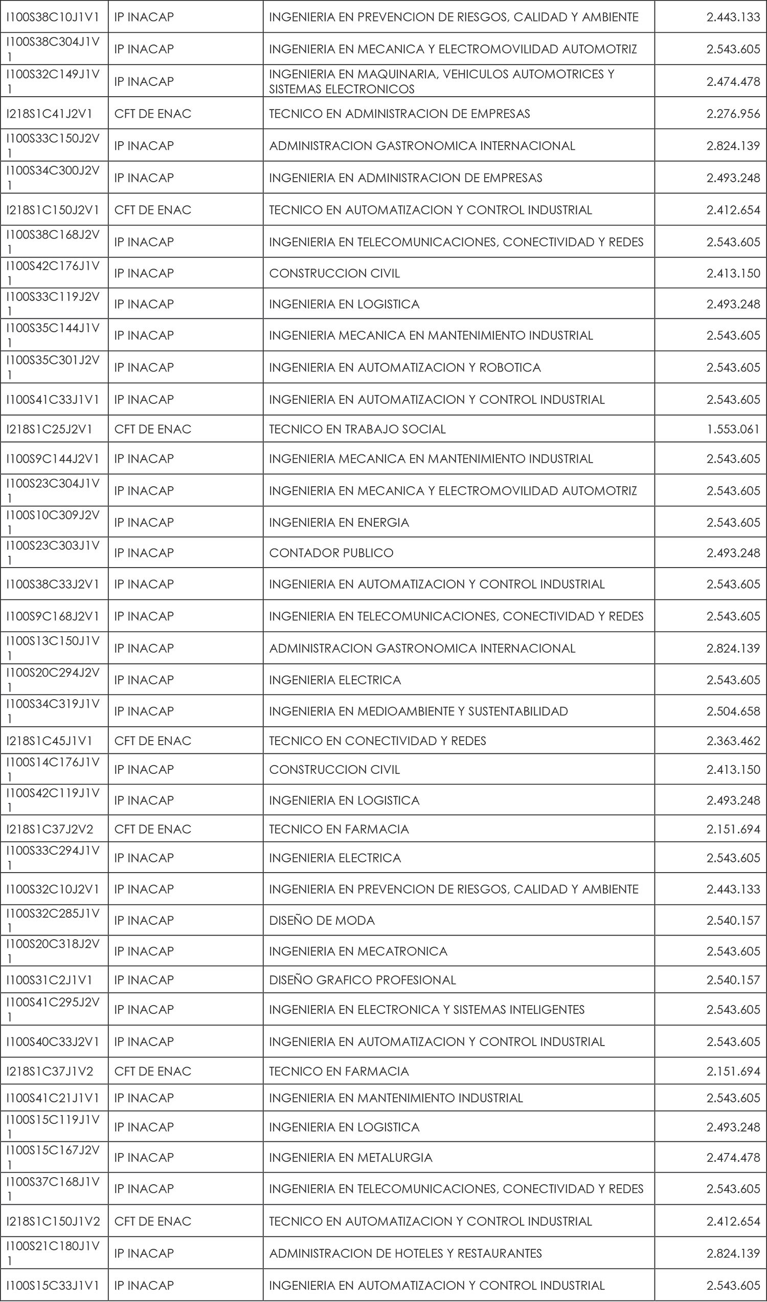 "Fíjase el arancel regulado para los programas impartidos por las Instituciones de Educación Superior adscritas a gratuidad, de conformidad al contenido de la siguiente tabla: