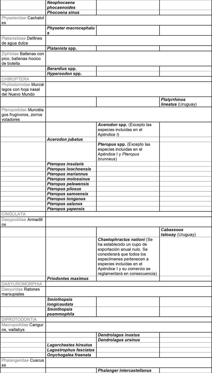 1. Las especies que figuran en estos Apéndices se clasifican: