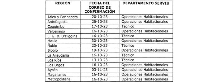 f) Que, para el presente proceso de selección, los distintos Servicios participantes dieron cumplimiento a lo señalado en el inciso tercero del resuelvo 1. de la resolución citada en el visto c), a excepción del Serviu de la Región de Ñuble, quien de acuerdo con su oficio citado en el visto f), presentó motivos ajenos a la responsabilidad de las familias y de las entidades patrocinantes de los proyectos de dicha región;