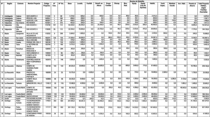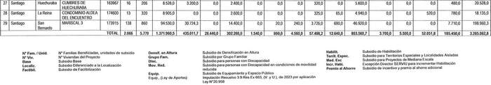 La letra a) del numeral 2° de la Resolución 2144 Exenta, Vivienda, publicada el 28.12.2023, modifica la tabla inserta el numeral 3 de la presente normas en el sentido de reemplazar la fila N° 35 y la fila Total, de la manera que la citada norma indica.