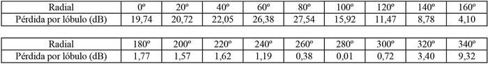 - Diagrama de radiación horizontal, de acuerdo a la siguiente tabla: