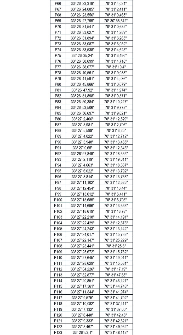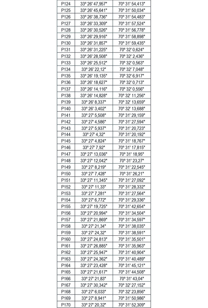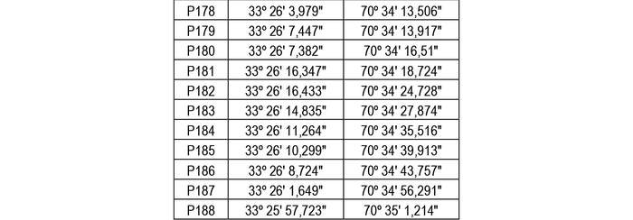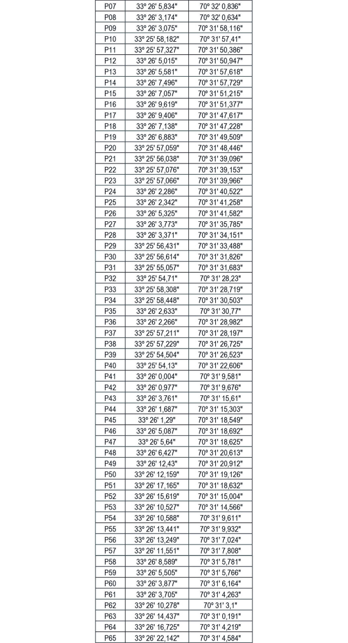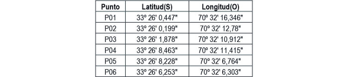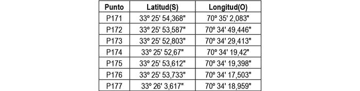 1. Autorízase a la concesionaria a modificar su concesión en el sentido de ampliar su zona de servicio a la comuna de La Reina, Región Metropolitana de Santiago, con el objeto de incorporar los siguientes puntos geográficos (Datum WGS84), conformado por la unión circundada de ellos, incluyendo las edificaciones de sus respectivos costados exteriores: