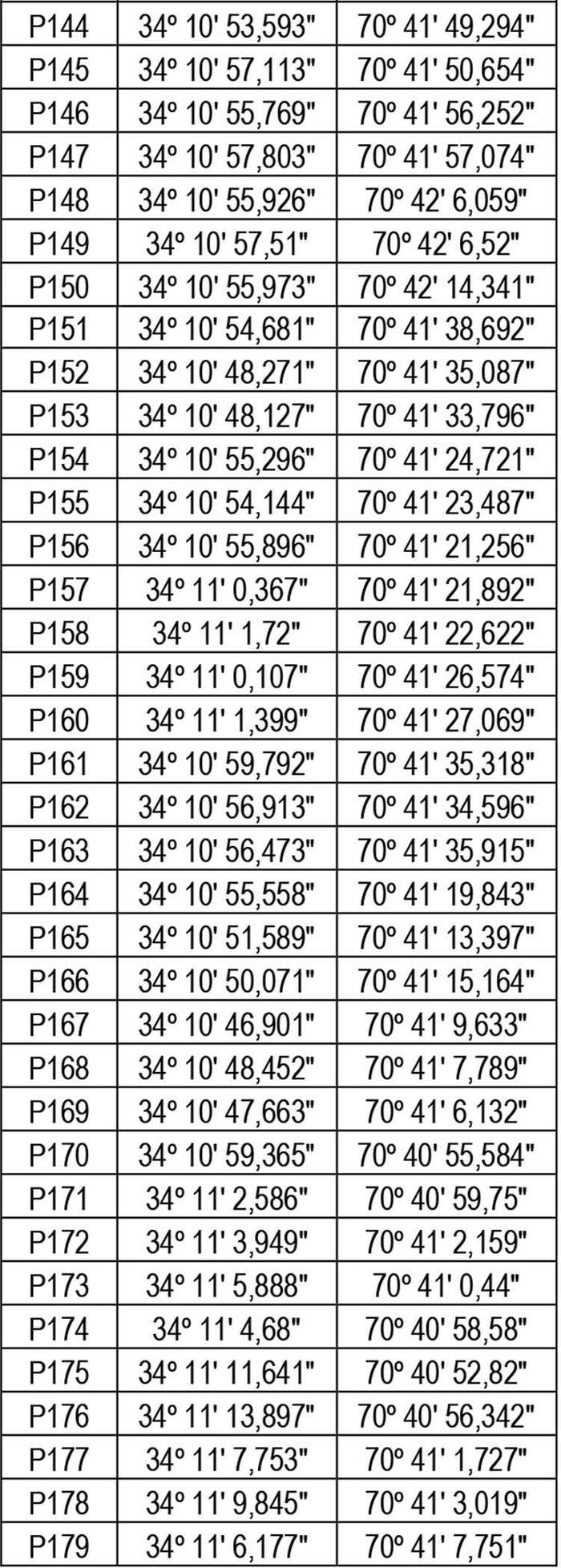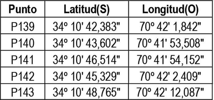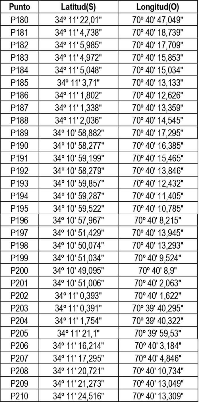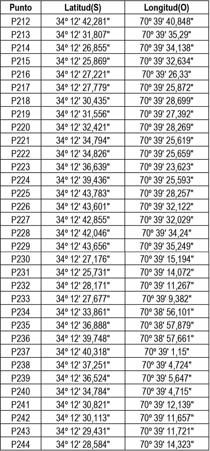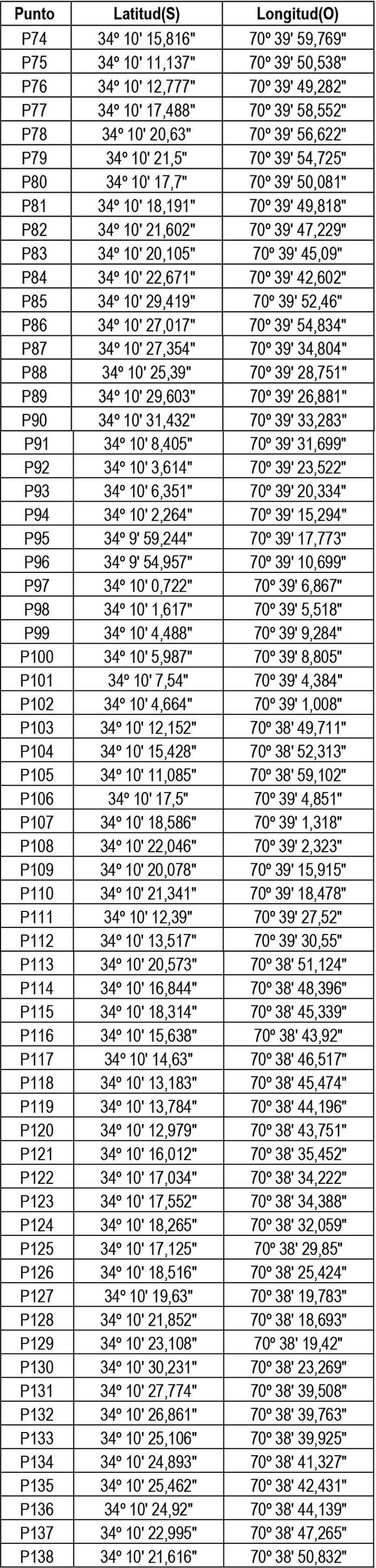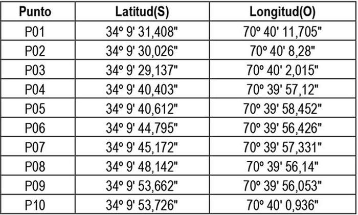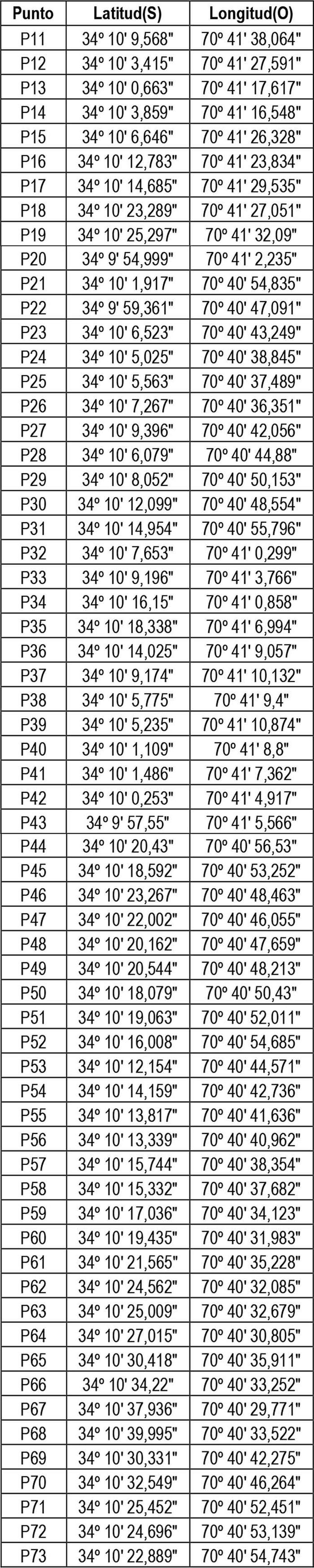 1. Autorízase a la concesionaria a modificar su concesión en el sentido de ampliar su zona de servicio a la comuna de Machalí, Región del Libertador General Bernardo O'Higgins con el objeto de incorporar, los siguientes puntos geográficos (Datum WGS84), conformado por la unión circundada de ellos, incluyendo las edificaciones de sus respectivos costados exteriores: