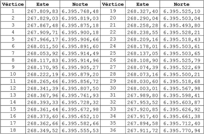 Artículo 2°. Límites y coordenadas. Los límites del santuario de la naturaleza "Cerro de la Cruz", representados en el mapa adjunto, se detallan en coordenadas UTM según Datum WGS-84, huso 19 sur y son las siguientes: