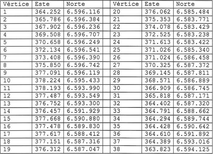 Artículo 2°. Límites y coordenadas. Los límites del santuario de la naturaleza "Río Sasso", representados en el mapa adjunto, se detallan en coordenadas UTM según Datum WGS-84, huso 19 sur y son las siguientes: