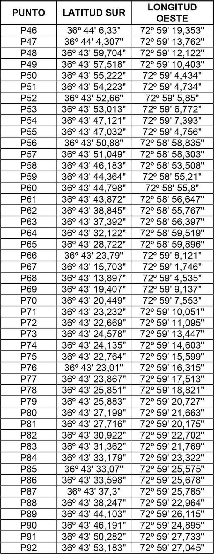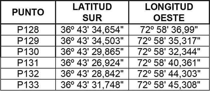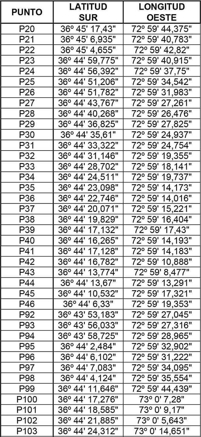 La zona de servicio comprende las áreas contenidas dentro del perímetro definido por las coordenadas geográficas, expresadas en Datum WGS 84, de las comunas que se indican a continuación: