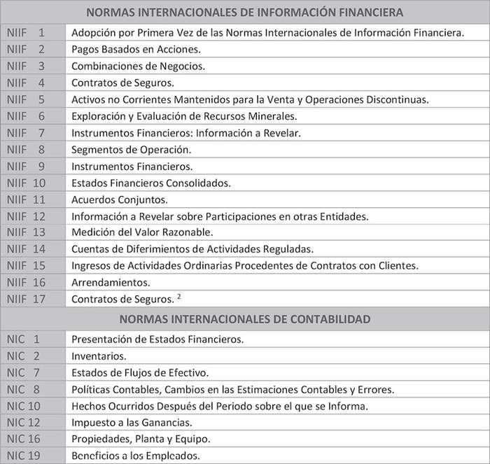A continuación se presentan los listados de las referidas normas e interpretaciones según materia: