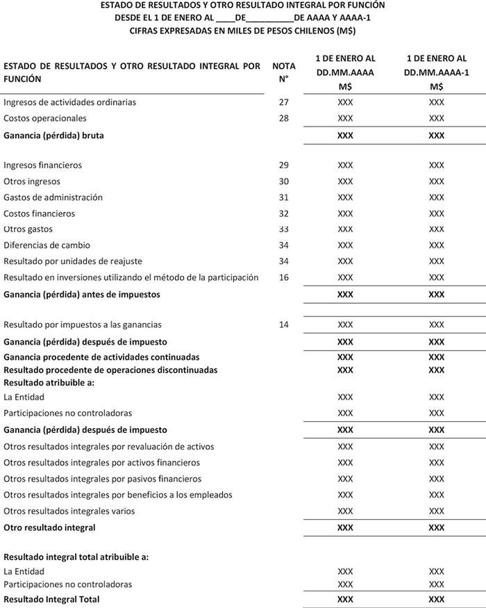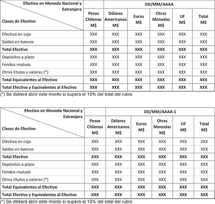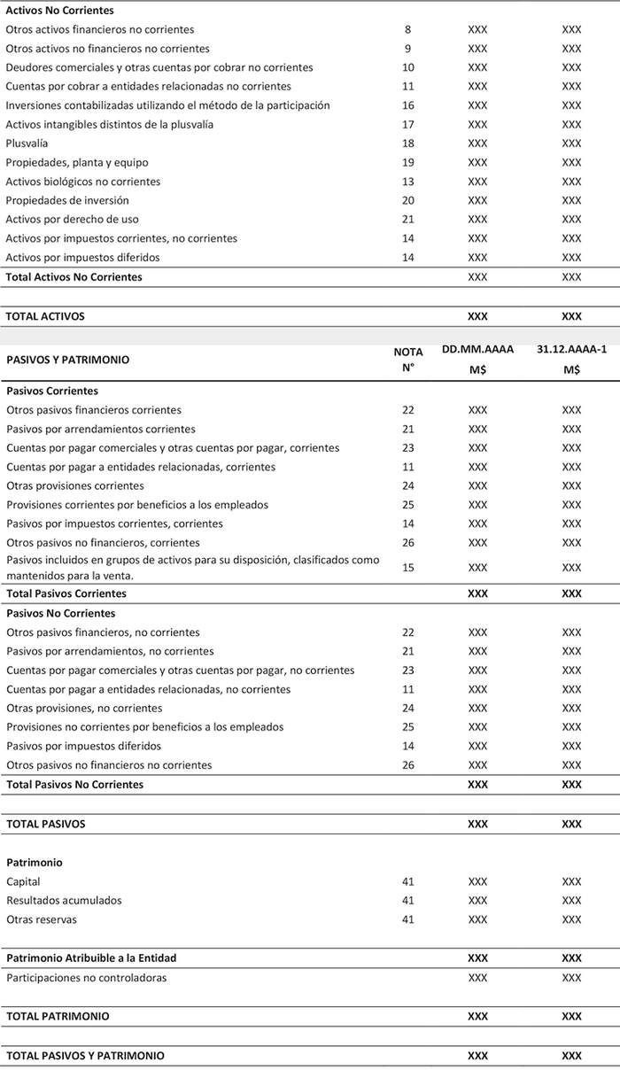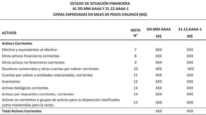 Los estados financieros deberán presentarse en miles de pesos (M$) y en forma comparativa con el ejercicio inmediatamente anterior. La información comparativa, deberá incluirse también en las notas explicativas de tipo descriptivo y narrativo, siempre que ello sea relevante para la adecuada comprensión de los estados financieros del periodo. La información que presenten dichos estados financieros deberá ser el reflejo fidedigno e integral de los registros contables que le sirvan de soporte.