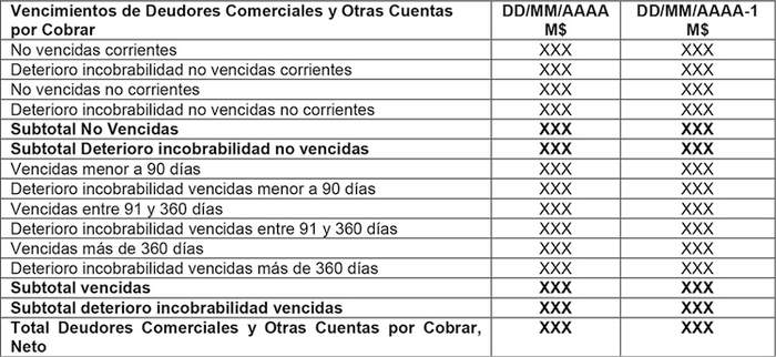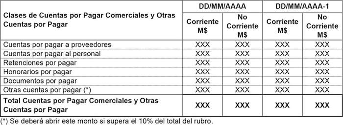 La institución deberá incluir un detalle con la composición de las cuentas por pagar comerciales y otras cuentas por pagar en el siguiente cuadro: