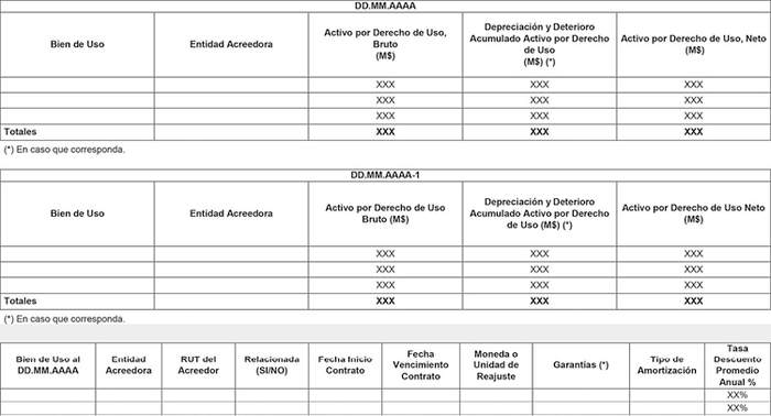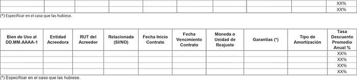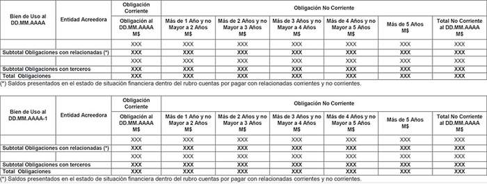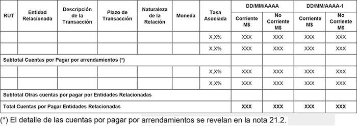 21.2. La entidad deberá detallar las obligaciones asociadas a pasivos por Derecho de Uso