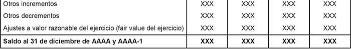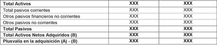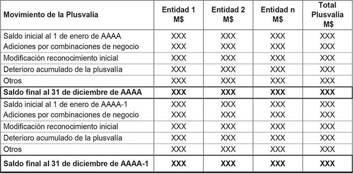 Incluir el movimiento de la plusvalía en el cuadro siguiente: