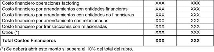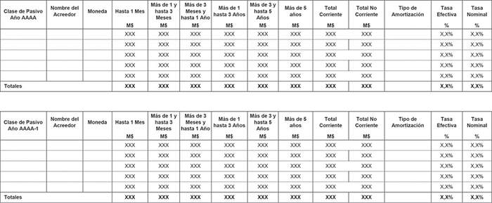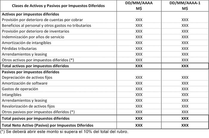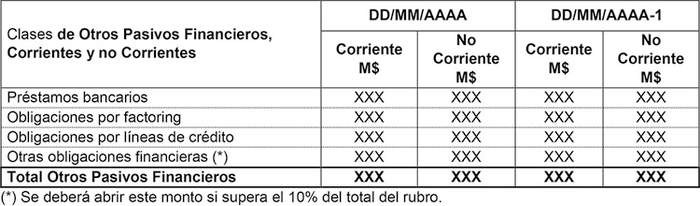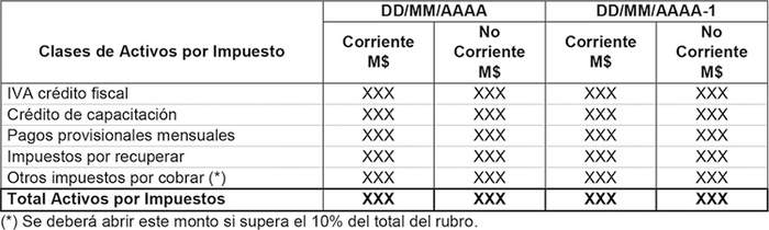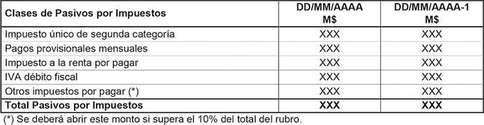 26.1. Se deberá presentar el saldo al cierre de los estados financieros de acuerdo al siguiente cuadro: