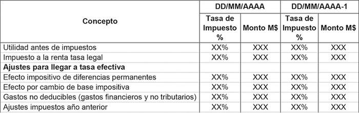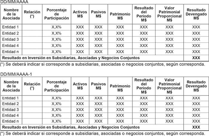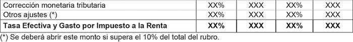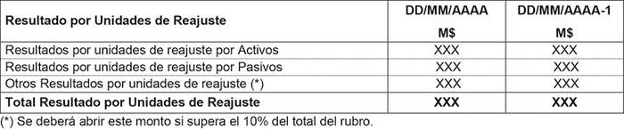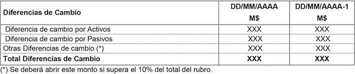La entidad deberá incluir los efectos de las variaciones en las tasas de cambio de la moneda y de unidades de reajuste en los siguientes cuadros: