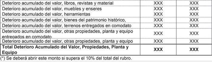 19.1. La entidad deberá detallar la composición por clase de propiedades, planta y equipo, a valores neto, bruto, depreciación y deterioro en los siguientes cuadros:
