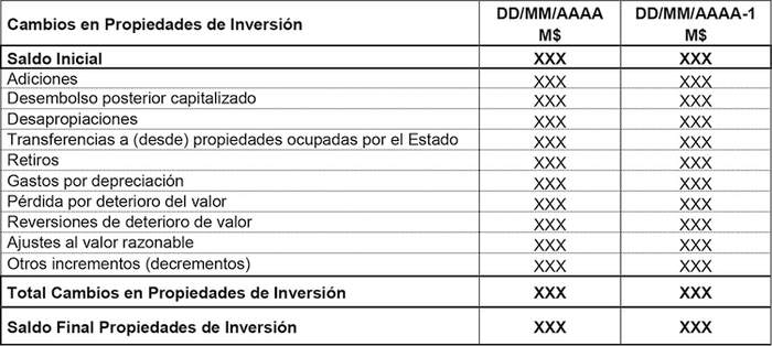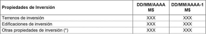 20.1. La entidad deberá detallar la composición por clase de Propiedades de Inversión