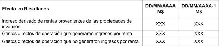 20.3. Detallar en el siguiente cuadro los ingresos y gastos con efecto en resultados, de Propiedades de Inversión: