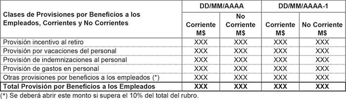 La institución deberá detallar la información de provisiones por beneficios a los empleados en el siguiente cuadro: