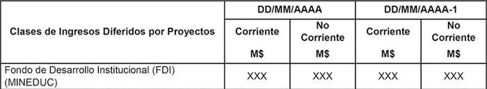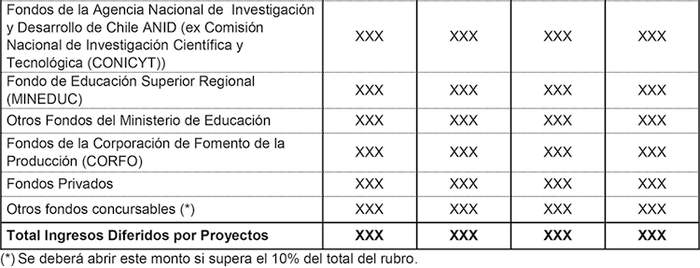 26.2. Detalle de los ingresos diferidos por proyectos según organismo: