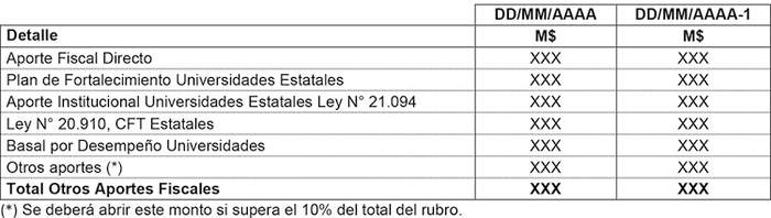 41.3. Otras reservas: La institución deberá incluir un detalle con la composición de otras reservas para el período AAAA y AAAA-1.