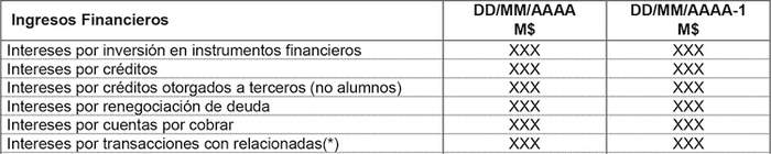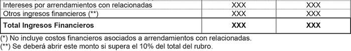Se deberán detallar en el siguiente cuadro los ingresos financieros: