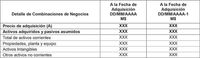 La casa de estudios deberá indicar un detalle de las combinaciones de negocios realizadas en el siguiente cuadro: