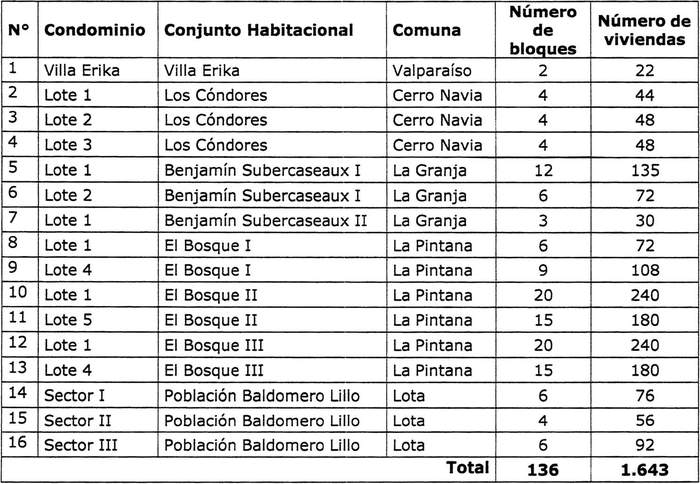 "11. Los condominios identificados en el resuelvo 2. de la presente resolución podrán participar de los llamados a postulación del Capítulo Tercero del DS Nº 27 (V. y U.), de 2016, y para todos los efectos, se entenderán como "primera selección" únicamente en el primer proceso de postulación en el que resulten seleccionados. No obstante, de acuerdo con el artículo 6 del DS Nº 27 (V. y U.), de 2016, no podrán incluir las obras que hayan sido financiadas en el proyecto del Plan Piloto de Asbesto regulado por la presente resolución.".